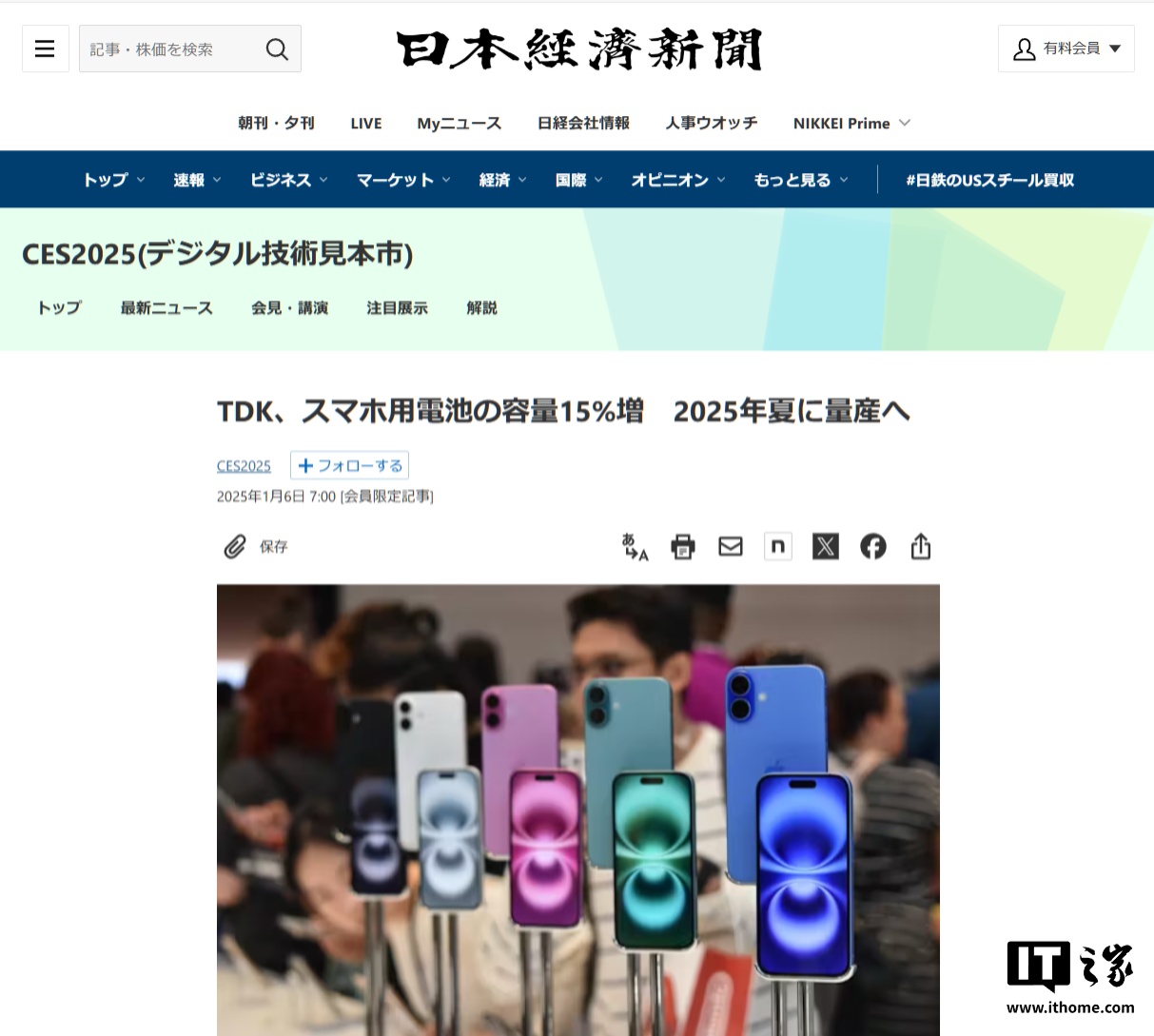 IT之家 1 月 8 日消息,据日经新闻 6 日报道,TDK 开发了一款充电容量增加 15% 的智能手机专用锂离子电池,并计划于 2025 年夏季正式开始量产。随着苹果等美国公司推出支持生成式 AI 的设备,智能手机的能耗预计将进一步增加。为了应对这一挑战,TDK 将通过提升电池容量来与竞争对手拉开差距。
